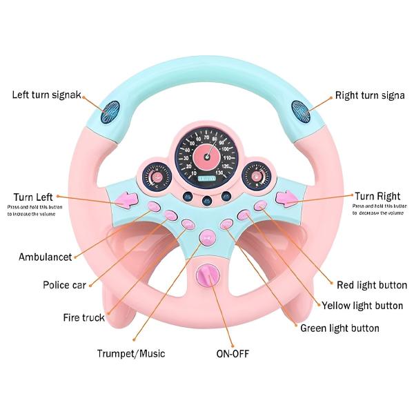 Το τιμόνι διαθέτει ρεαλιστικό σχεδιασμό με κουμπιά, φώτα και ηχητικά εφέ, προσφέροντας μια αυθεντική εμπειρία οδήγησης για ευφάνταστο παιχνίδι.