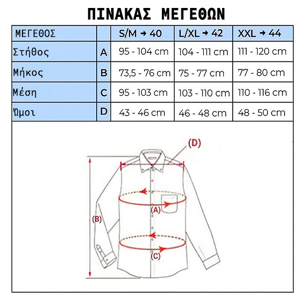Το πουκάμισο προσαρμόζεται καλά στο σώμα, στενεύοντας απαλά από το στήθος προς τη μέση.