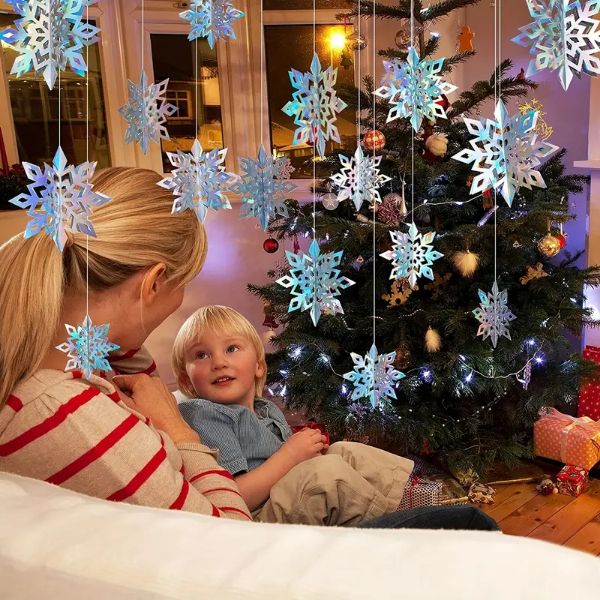 Αυτές οι χριστουγεννιάτικες ιριδίζουσες κρεμαστές χάρτινες χιονονιφάδες είναι κατάλληλες για μια ποικιλία περιστάσεων, συμπεριλαμβανομένων των διακοσμήσεων χριστουγεννιάτικων και Πρωτοχρονιάτικων πάρτι, πάρτι γενεθλίων με θέμα Frozen, baby shower και διακοσμήσεων του σπιτιού για τις γιορτές.
