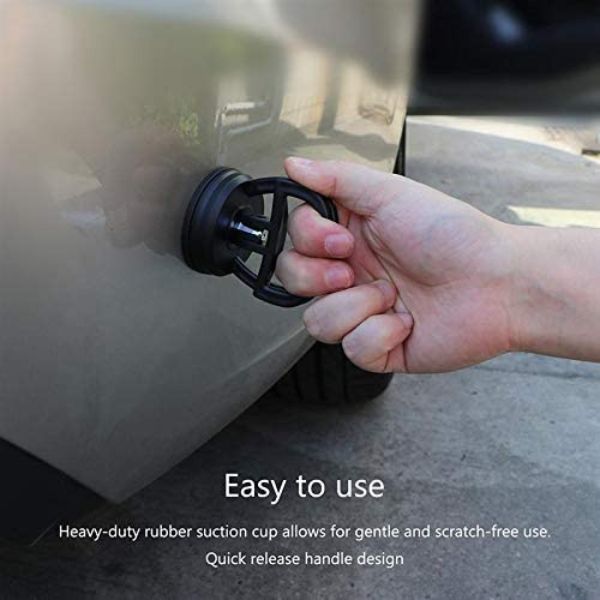 Η χρήση αυτού του εργαλείου είναι απίστευτα εύκολη. Απλώς τοποθετήστε το σε μια επίπεδη επιφάνεια, όπως μια λαμαρίνα αυτοκινήτου, και πιέστε τη λαβή για να το στερεώσετε σταθερά. Από εκεί, σπρώξτε τη λαβή από κάτω και τραβήξτε το εργαλείο με δύναμη για να ισοπεδώσετε το βαθούλωμα.