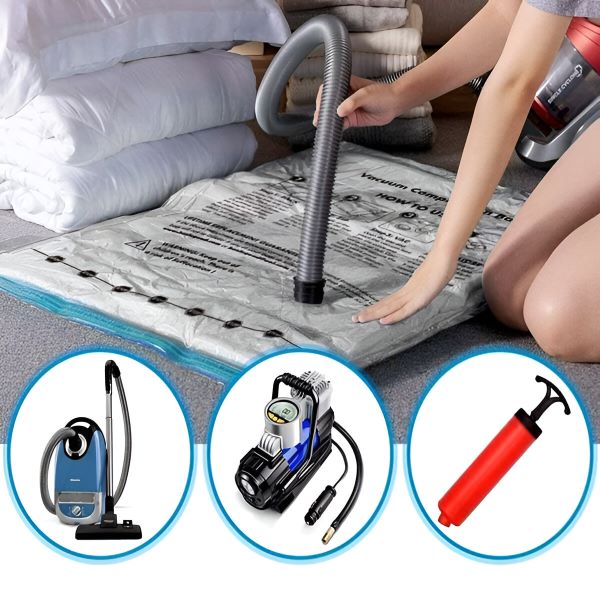 Δεν χρειάζονται ειδικά εργαλεία—απλά χρησιμοποιήστε οποιαδήποτε ηλεκτρική σκούπα για να συμπιέσετε τις σακούλες σε δευτερόλεπτα! Επιπλέον, είναι επαναχρησιμοποιήσιμες, ώστε να μπορείτε να αποθηκεύετε και να προστατεύετε τα ρούχα σας ξανά και ξανά.